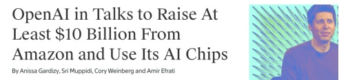 12月17日消息,据The Information报道,有知情人士透露,人工智能公司OpenAI正在与亚马逊洽谈,计划筹集100亿美元或更多资金,并使用其人工智能芯片。