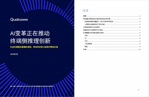 上个月,高通发布《AI变革正在推动终端侧推理创新》白皮书,认为DeepSeek R1一经问世,便在整个科技行业引起波澜。白皮书同时指出,在训练成本下降、快速推理部署和针对边缘环境的创新推动下,AI正在经历重要变革。科技行业不再仅仅聚焦于竞相构建更大的模型,而是转向如何在边缘侧实际应用中高效地部署模型。对大型基础模型的蒸馏已催生大量更智能、更小型、更高效的模型,使各行业能够更快地规模化集成AI,特别是在终端侧加速集成。